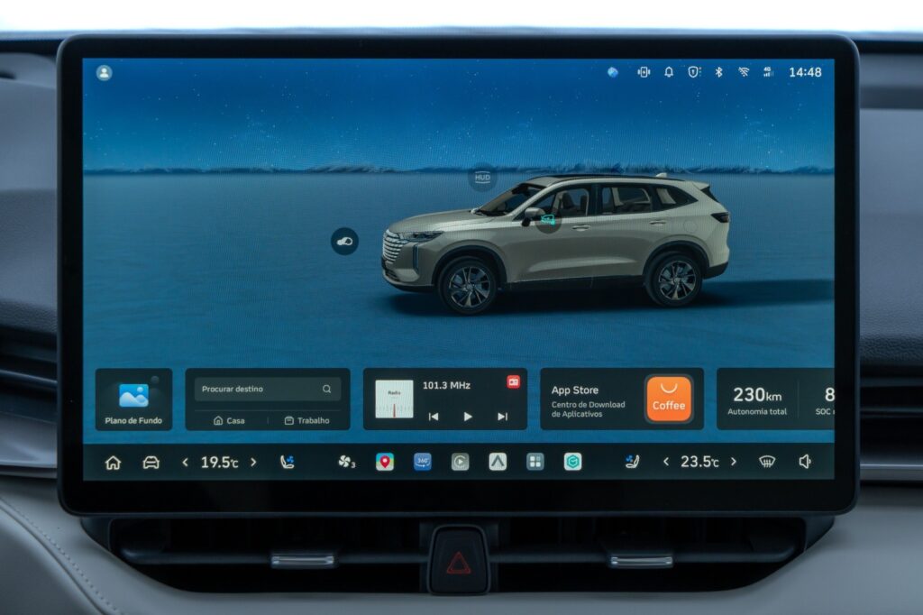 O novo Haval H6 traz outra grande novidade, que é a plataforma digital Coffee OS 3, sistema operacional inteligente desenvolvido pela própria GWM. Ela oferece uma interação digital mais rápida, menus reorganizados e navegação mais intuitiva e com novos recursos.