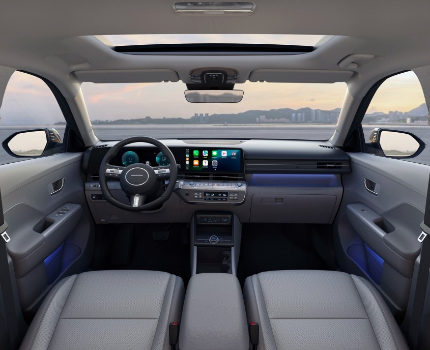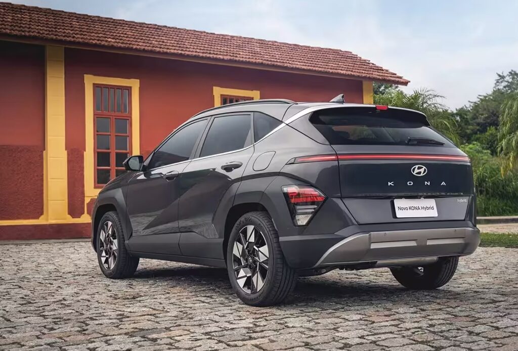 Medidas – O Kona tem 4,35 metros de comprimento, 1,82m de largura e 1,58m de altura. As rodas de 18” tem acabamento diamantado. O porta-malas transporta até 407 litros, chegando a 1.241 litros com o rebatimento do banco traseiro. Aliás, a tampa tem abertura elétrica e acionamento automático, além de regulagem da altura — ideal para vagas com pé-direito reduzido ou para quem tem estatura mais baixa.