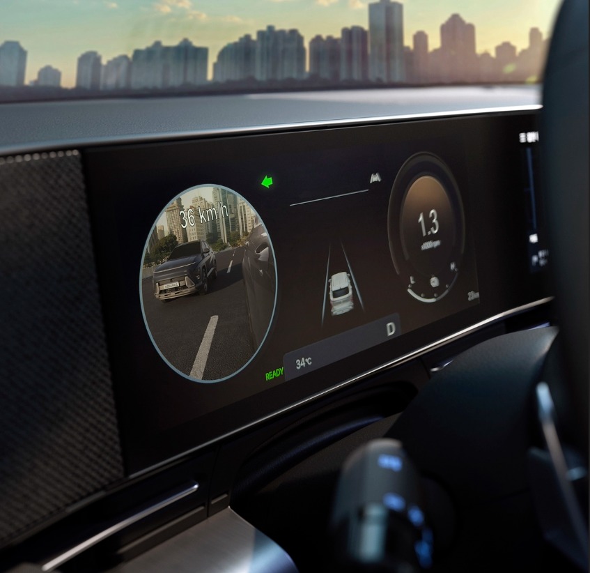Ponto cego – Um dos recursos mais legais do Kona é a câmera de monitoramento de ponto cego (ou Blind-Spot View Monitor – BVM). Ela é um recurso de segurança de ponta e funciona assim: ao acionar a seta para mudar de faixa, uma câmera externa localizada no retrovisor exibe imagens em tempo real no painel de instrumentos digital do carro.