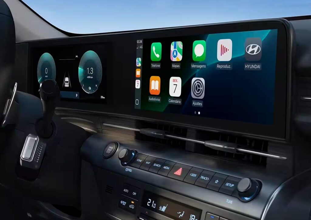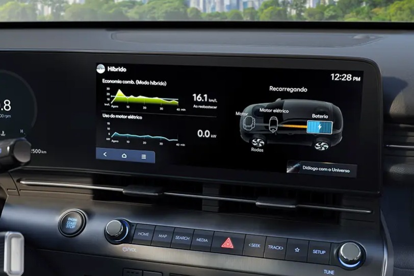 O motor 1.6 a combustão, por sua vez, entra em ação em velocidades mais elevadas ou quando se pisa com mais vigor no acelerador, nos casos de ultrapassagens, por exemplo. Ele também recarrega a bateria na maioria das ocasiões, a não ser quando a demanda de potência é máxima — aí os dois trabalham juntos. Combinados, são 141 cv de potência e 27 kgfm de torque. O conjunto é auxiliado pelo câmbio automatizado de dupla embreagem com 6 marchas, a chamada DCT. As trocas são muito suaves – e a Hyundai atribui isso à tecnologia shift by wire, sem conexão por cabos.
