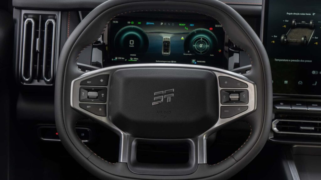 SUV T1 – O modelo também usa um conjunto híbrido plug-in que combina um motor 1.5 turbo a gasolina, que entrega 135 cv e 20,4 kgfm de torque, a um motor elétrico de 150 kW (204 cv) e 31,6kgfm.