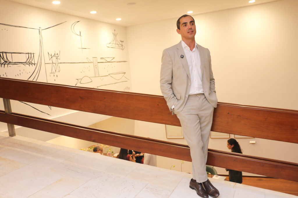 A residência projetada por Oscar Niemeyer, localizada na QI 15 do Lago Sul, foi cenário de uma vernissage que reuniu convidados na noite de quinta-feira, em um encontro que homenageou a arquitetura e a memória modernista da capital. Com mailing assinado por Claudia Salomão e Bruno De Luca, o evento recebeu empresários e nomes ligados à arquitetura, ao design e às artes, que percorreram os ambientes da casa restaurada pelo escritório Valéria Gontijo Arquitetos. Considerada uma das obras residenciais mais emblemáticas de Niemeyer em Brasília, a casa continua com características originais do projeto preservadas, como as formas curvas e a integração com o entorno.