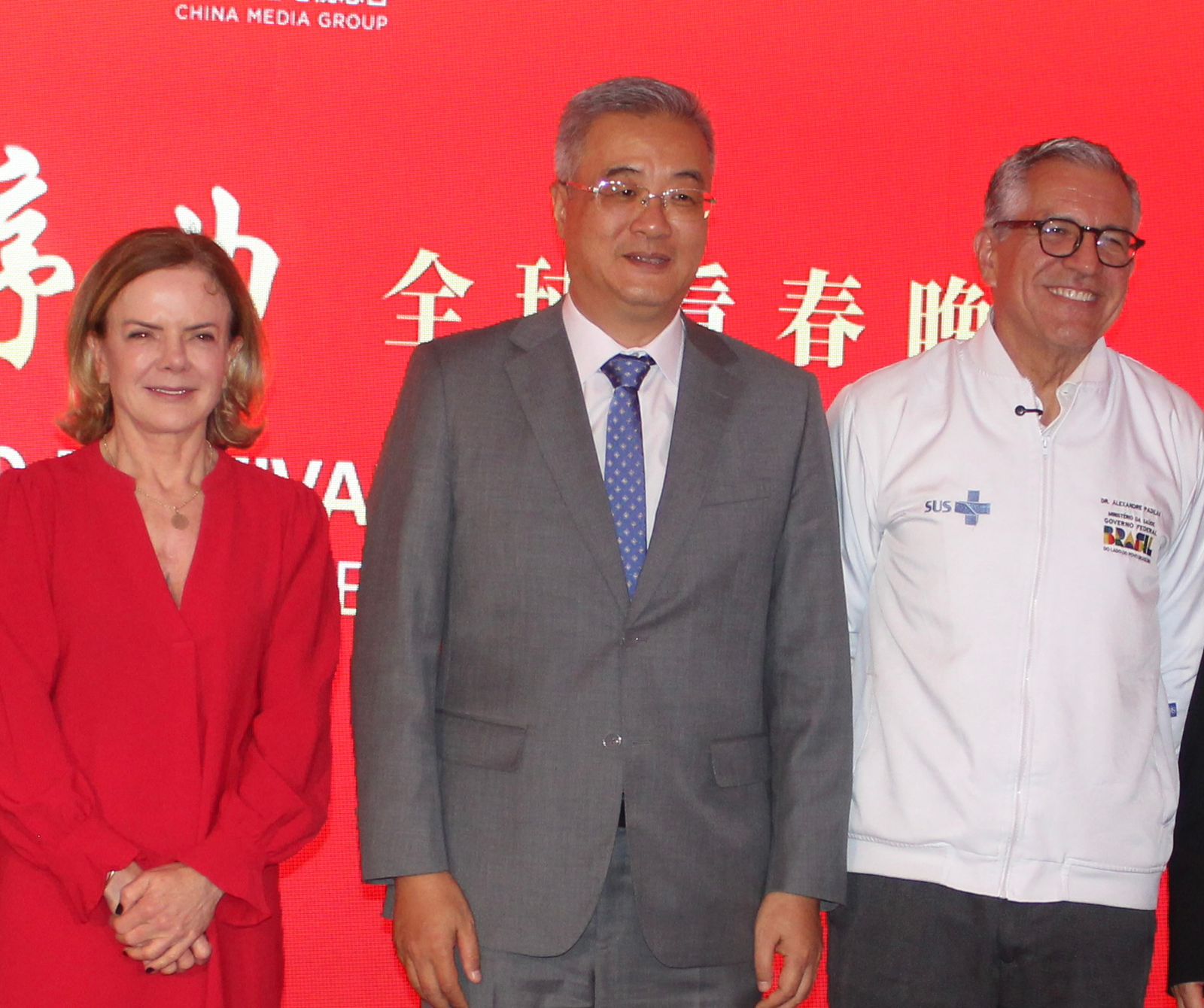 Gleisi Hoffmann; embaixador da República Popular da China, Zhu Qingqiao; e o ministro da Saúde, Alexandre Padilha